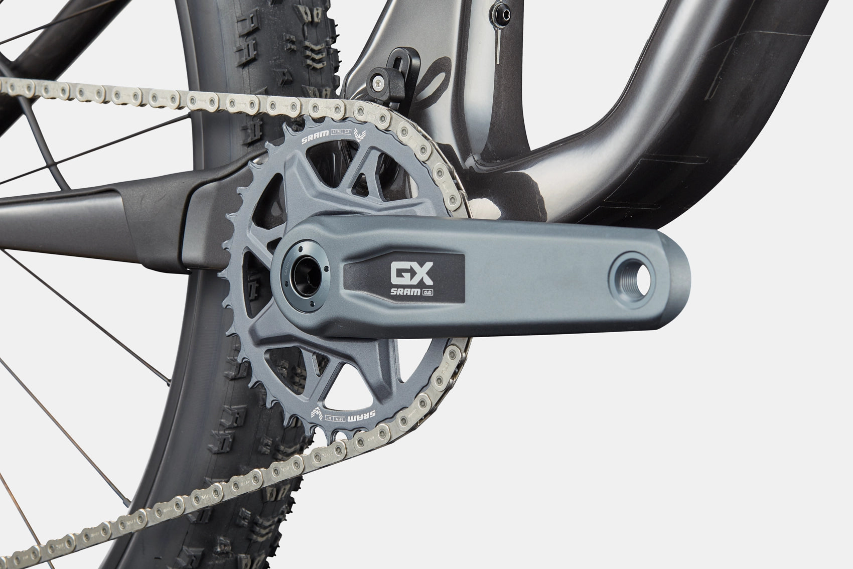 - Transmissão SRAM GX Eagle AXS durável e suave, grupo eletrônico sem fio de 12 velocidades com freios Level Silver Stealth